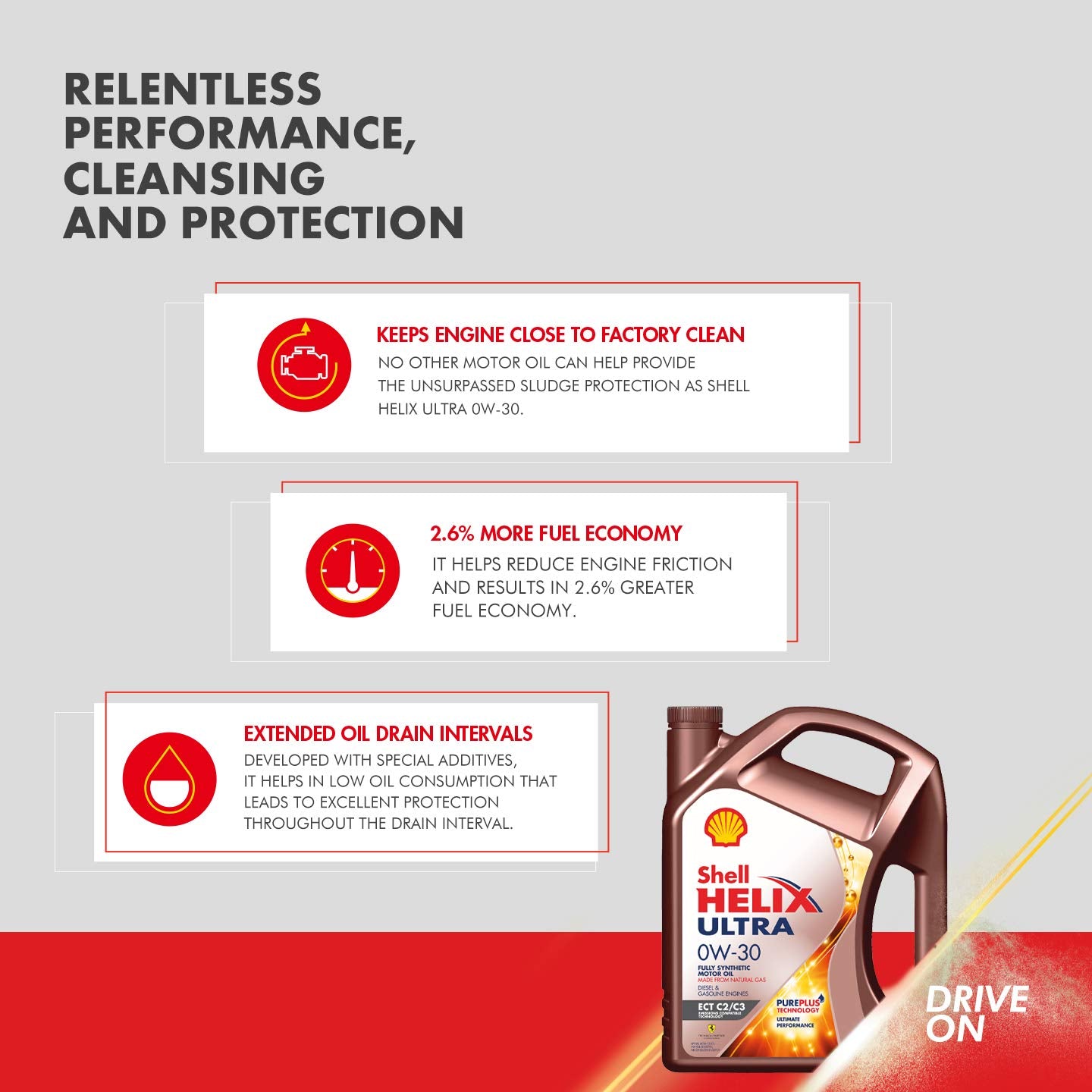Keeps engine close to factory clean: No other motor oil can help provide the unsurpassed sludge protection as Shell Helix Ultra 0W-30.